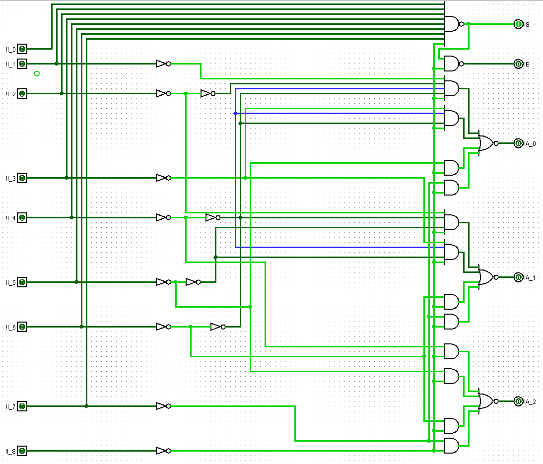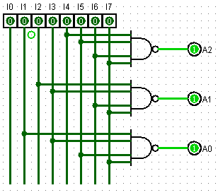 - 当无信号输入时,!A_0~!A_2输出全为1