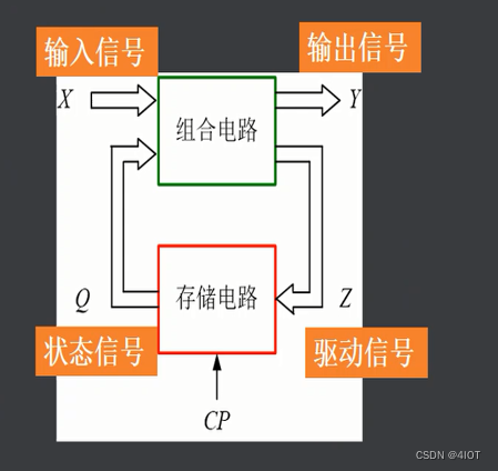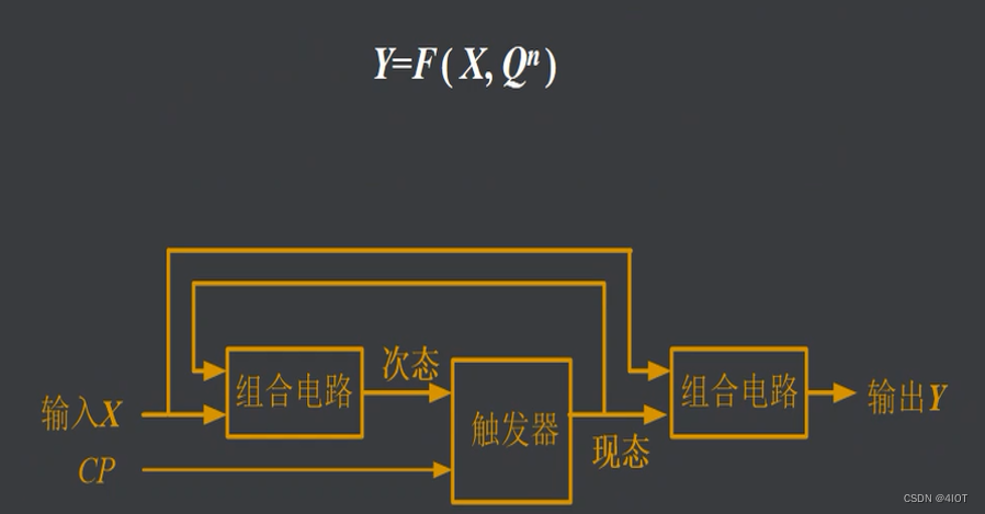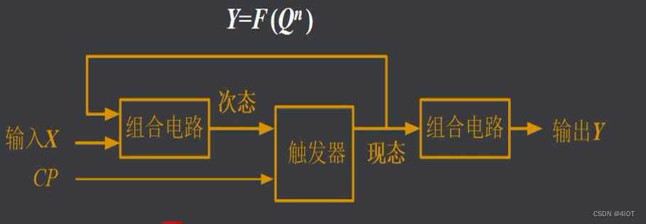 结构:组合电路+存储电路(触发器)。