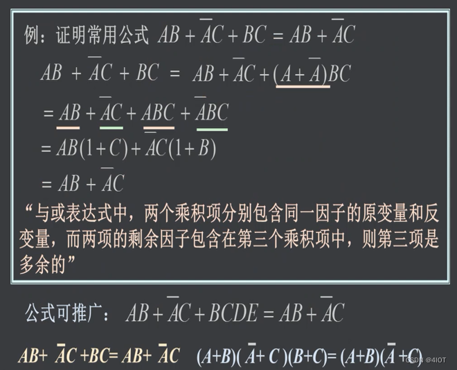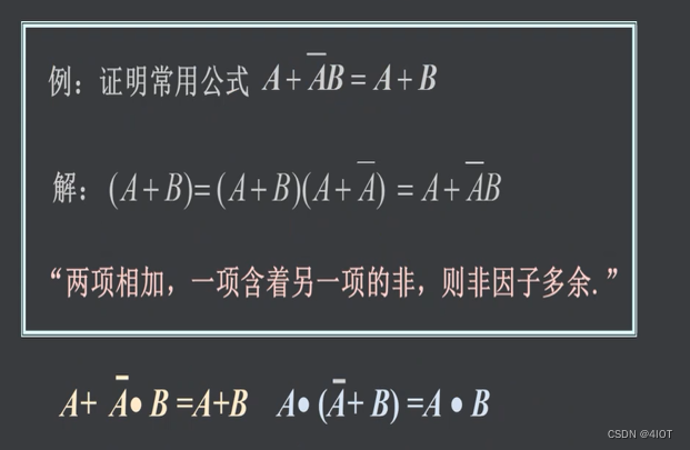 两项相加,一项含着另一项的非,则非因子多余。