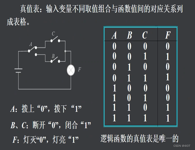 特点:输入变量和输出变量只有逻辑0、逻辑1两种取值。