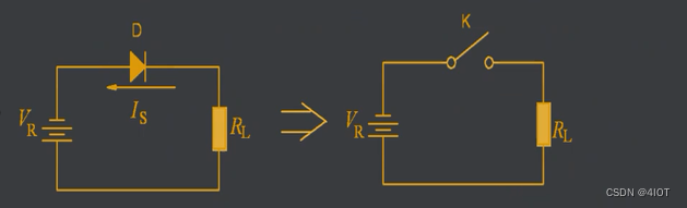 - 加反向电压K时,二极管截止,反向电流I可忽略。二极管相当于一个断开的开关。
