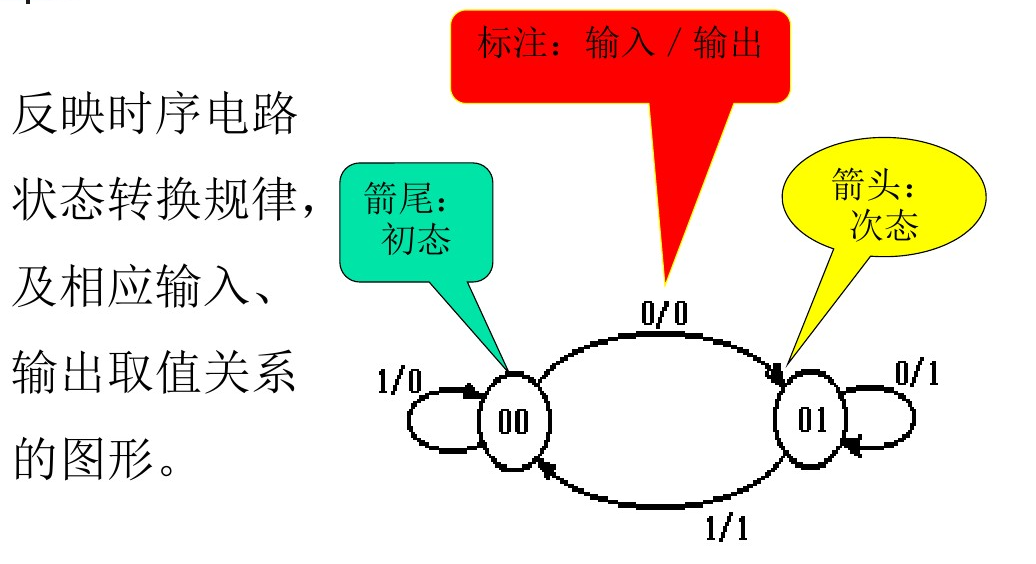 组合电路和存储元件互联后组成了时序电路。存储元件是能够存储二进制信息的电路。存储元件在某一时刻存储的二进制信息定义为该时刻存储元件的状态。时序电路通过其输入端从周围接受二进制信息。时序电路的输入以及存储元件的当前状态共同决定了时序电路输出的二进制数据,同时它们也确定了存储元件的下一个状态。时序电路的输出不仅仅是输入的函数,而且也是存储元件的当前状态的函数。存储元件的下一个状态也是输入以及当前状态的函数。因此,时序电路可以由输入、内部状态和输出构成的时间序列完全确定。
