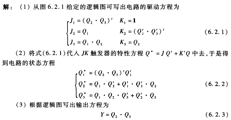 2. 将这些驱动方程代入相应触发器的特性方程,得到每个触发器的状态方程,从而得到由这些状态方程组成的整个时序电路的状态方程组。