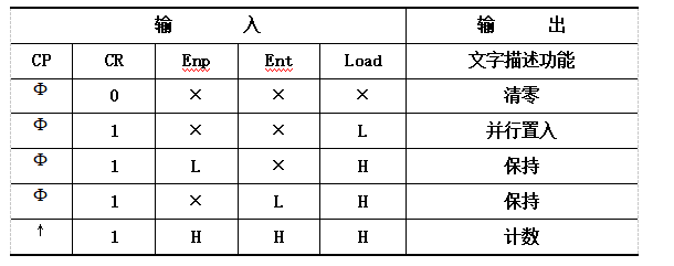 表2.5.1 74HC161的功能表