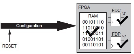 当一个Xilinx的FPGA芯片被重新配置时,每一个单元都将被初始化,如图6所示。在某种意义上讲,这是一个上电之后的“终极的”全局复位操作,因为它不仅仅是对所有的触发器进行了复位操作,还初始化了所有的RAM单元。随着Xilinx FPGA芯片内部的嵌入式RAM资源越来越多,这种“终极的”全局复位操作越来越有意义。对所有的RAM单元进行预定义,在软件仿真和实际操作中都是非常有帮助的,因为这样避免了在上电时采用复杂的启动顺序来清除存储单元内容的操作。