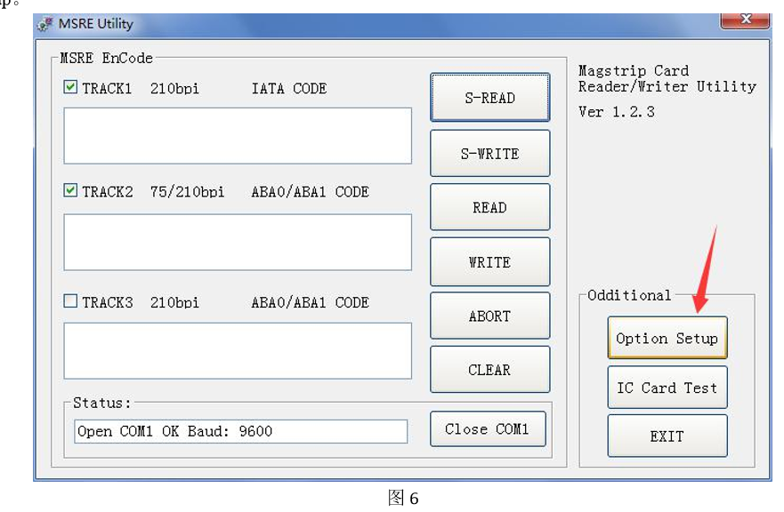 7. 请下载 MCR200 的测试软件 到电脑并打开软件,如图 6,点击 Option Setup。