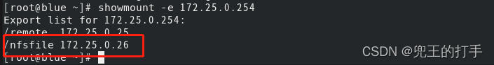 第六步:接下来我们需要在NFS客户端进行配置,使用showmount命令查询NFS服务器的远程共享信息,格式为“共享的目录名称 允许使用客户端地址”。