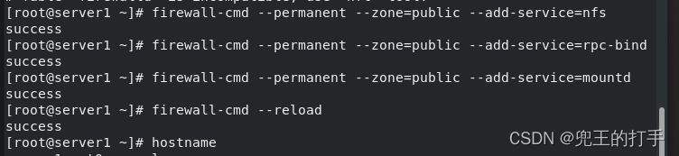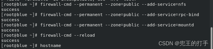 第二步:配置好防火墙,以免默认的防火墙策略禁止正常的NFS共享服务。两台主机都配置即可。