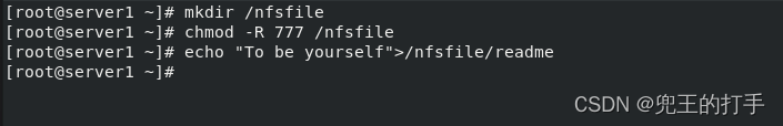 第三步:在NFS服务器上搭建用于NFS文件共享的目录,并设置足够的权限确保其他人也有写入权限。