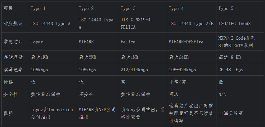 ISO/IEC 21481(ECMA-352): 在ISO/IEC 18092的基础上,兼容支持ISO 15693。