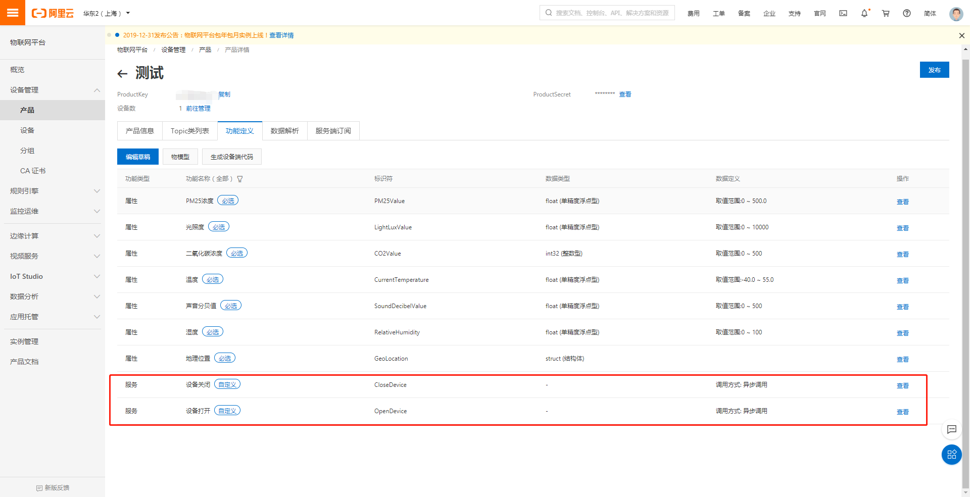 - 连接物联网平台获取设备属性值