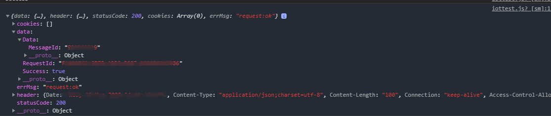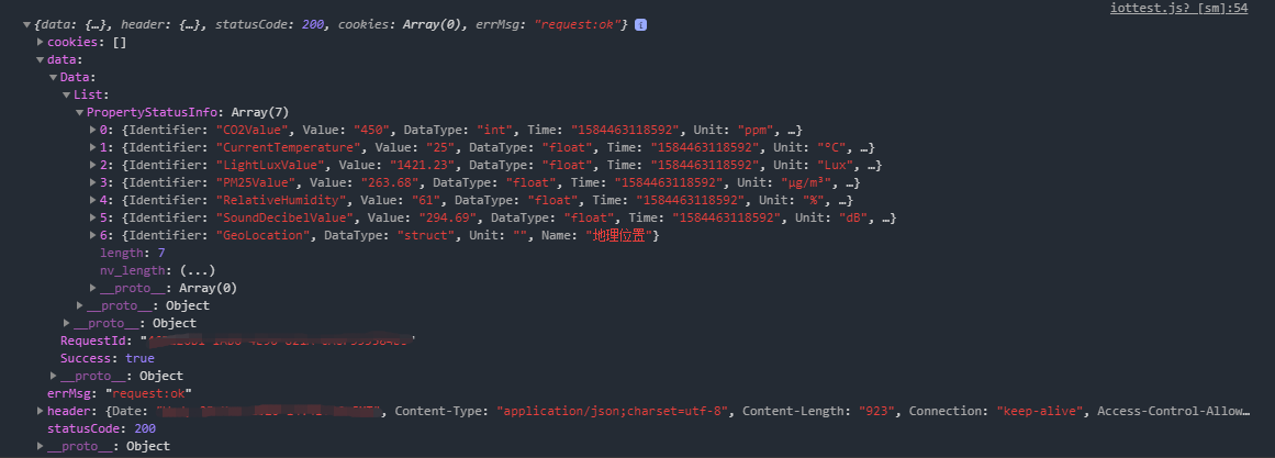 可以看到物联网平台返回的Response结果如下。