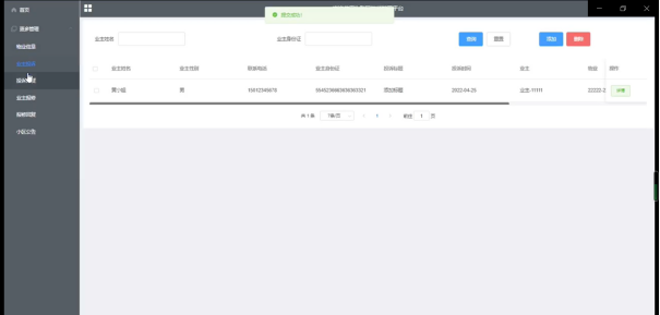 对系统进行测试后,改善了程序逻辑和代码。同时确保系统中所有的程序都能正常运行,所有的功能都能操作,并且该系统有很好的操作体验,实现了对于管理员和业主双赢。