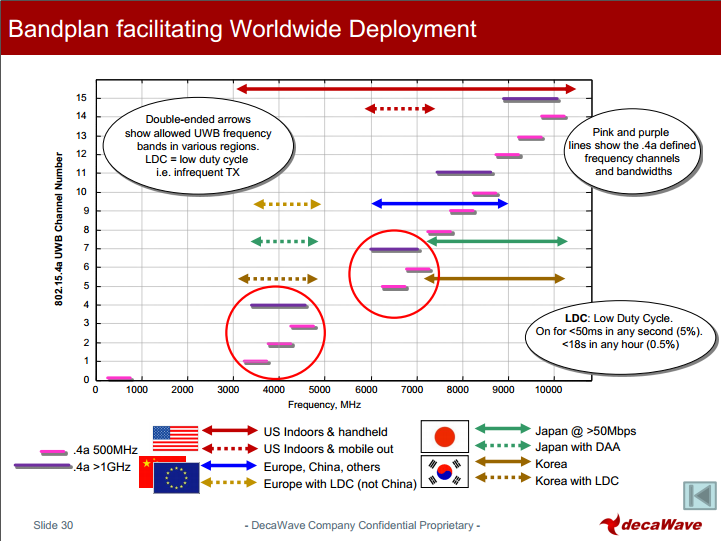 从Decawave官方发布的文档上看,中国UWB的可使用范围是在: