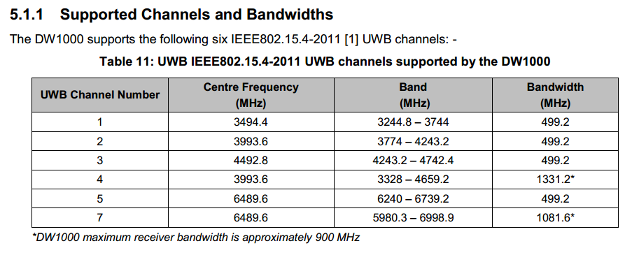 从DW1000 datasheet上看到目前支持的信道上只是Channel5和Channel7在China的范围内: