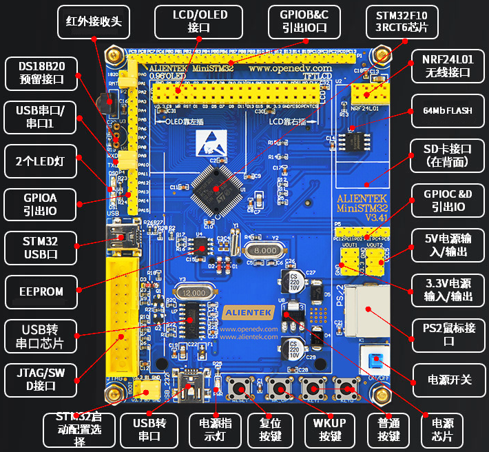 选用正点原子的STM32F103RCT6开发板,亦可选用其他款STM32开发板。