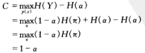 从公式中可以看到,信道输出端的概率分布越均匀,则信道容量越小。