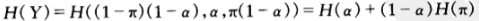 从公式上咋一看,似乎H(Y)的的最大值是log3,但无论选择什么输入分布p(x),都无法达到这个值。设E代表事件{Y=e},并使用表达式: