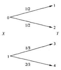 这种信道对于两个输入中的每一个,均有两个可能的输出,如下图所示: