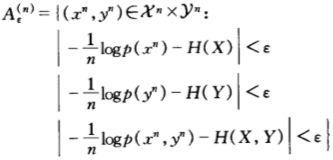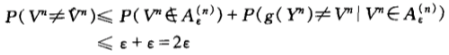 我们能以小于ε的误差概率将需要的下标发送给接收者,接收者可以通过穷举典型集Aε(n),选择与被估计下标相应的序列,从而重构出Vn。这个序列将以很高的概率与传输序列相一致。具体来说,对充分大的n,我们有,