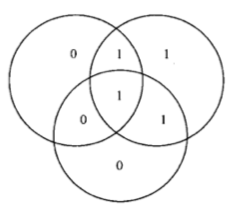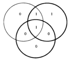 可以用简单的文氏图表示来解释汉明码的工作原理,为了发送信息序列1101,将序列中的4个信息比特分别放在图中4个相交的区域中,然后在剩余的区域中各放置一个校验位使得每个圈中的校验结果为偶数(即每个圆中有偶数个1),如下图,