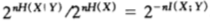 另一方面,也可以计算得到信息容量C=maxI(X;Y)=1比特,且在p(x)=(1/2,1/2)时达到。