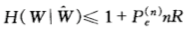 为其估计,那么,W->Xn(W)->Yn->W‘行程马尔柯夫链,注意到误差概率为: