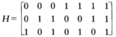 为了说明汉明码的基本思想,考虑分组长度为7,单个码字长度为3的非0二元向量的集合,以它们为列向量构成一个矩阵: