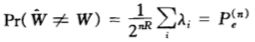 【费诺不等式】设离散无记忆信道的码簿为C,且输入消息W服从2nR上的均匀分布,则有,