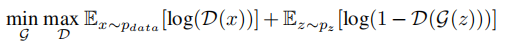 where x is taken from the real images denoted(表示) pdata, and z is a latent vector from some probability distribution by the generator G.