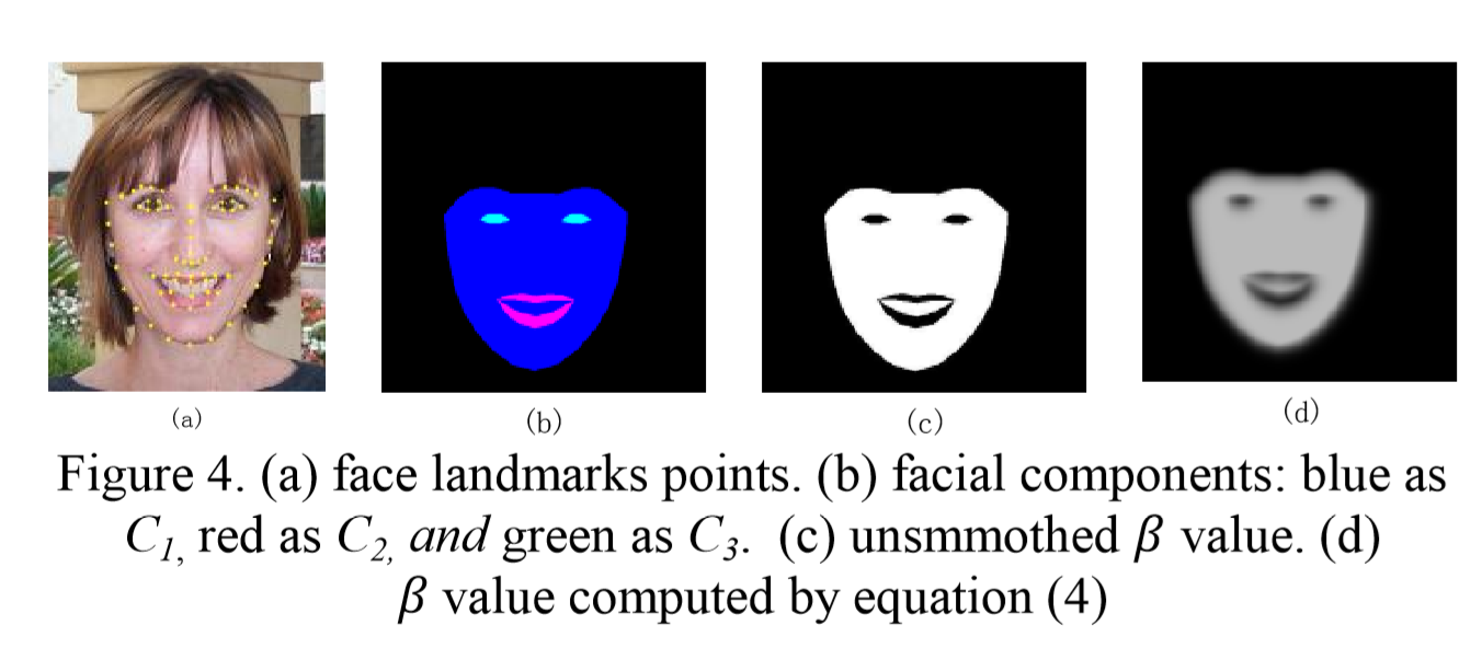 接着再用Bayesian分割算法来给以上处理好的人像分割成皮肤和非皮肤(眼睛,眉毛那些),具体为利用多尺度随机区域(MSRF)和sequential maximum a posteriori (SMAP)estimator,详见[12],然后就分界得很清楚了,但是还要用nearest-neighborhood point来精化分界线,其中下巴和眉毛都不会变