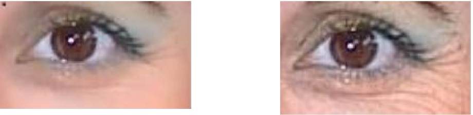 因为磨皮在妆容迁移前就做了,比起其他软件,我们的方法对皮肤瑕疵解决的更好,比如鱼尾纹,![]()