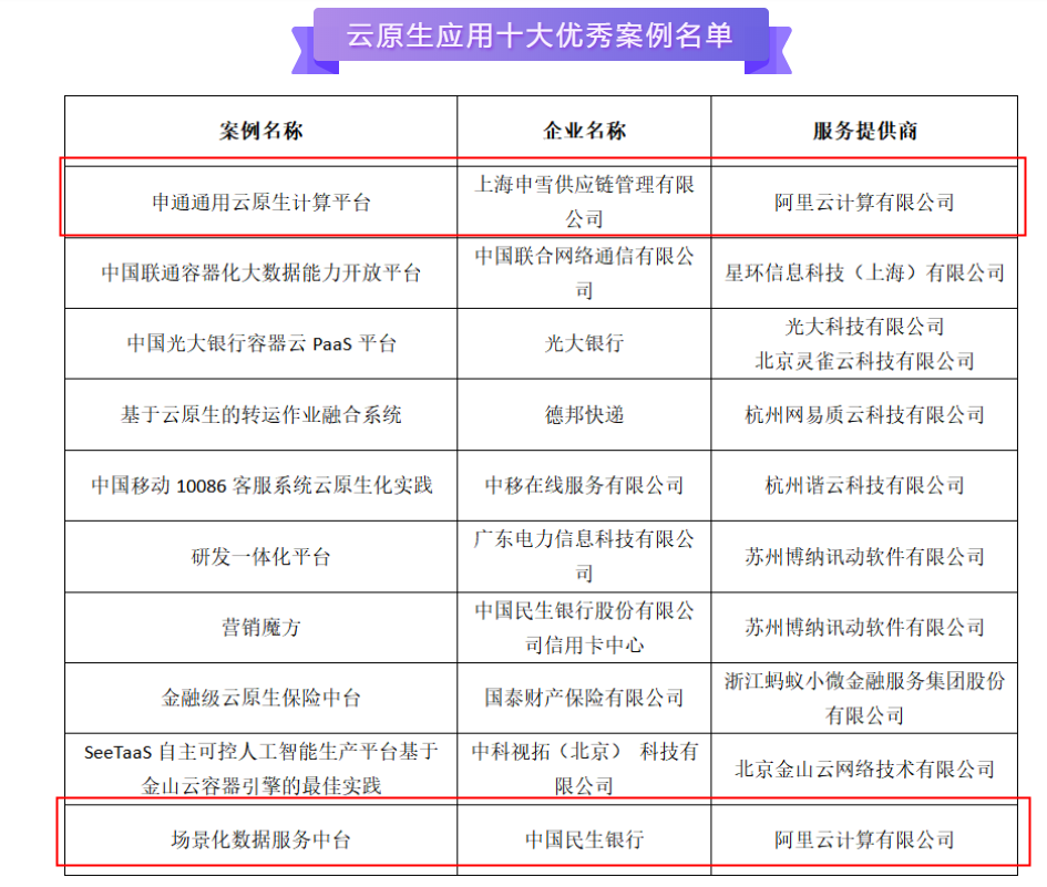 近日,云计算开源产业联盟在OSCAR开源先锋日云原生专场活动上公布了“云原生应用十大优秀案例”评选结果,由阿里云提供技术服务的申通通用云原生计算平台和中国民生银行的场景化数据服务中台双双入选。这次评选的四大标准是:面向传统行业数字化转型,规模化应用云原生技术,提升企业资源利用率及研发效率,助力企业业务创新发展。申通和民生银行两大案例因为在云原生和数据服务中台的技术实践中表现出色,最终脱颖而出。