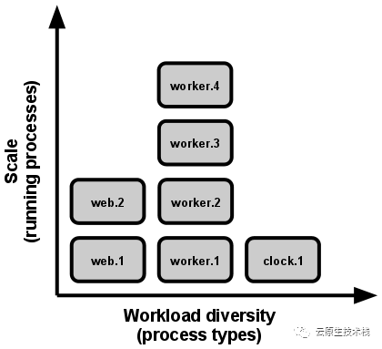 上述进程模型会在系统急需扩展时大放异彩。12-Factor 应用的进程所具备的无共享,水平分区的特性 意味着添加并发会变得简单而稳妥。这些进程的类型以及每个类型中进程的数量就被称作 进程构成 。