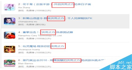 用蝉大师工具查询的‘洪荒之力’热度在APPStore中是6182,搜索结果数是48。这证明了这个行为词到今天仍能带来日均1000以上的下载量,从搜索结果数中我们可以发现只有48的结果数,这又证明了这个词的竞争压力不大,到今天仍是可以做的一款行为词。