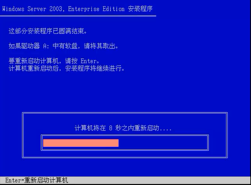 步骤四:按Enter键,此时计算机会自动重新启动,此过程,不需管,自行运行。是显示提示信息界面。