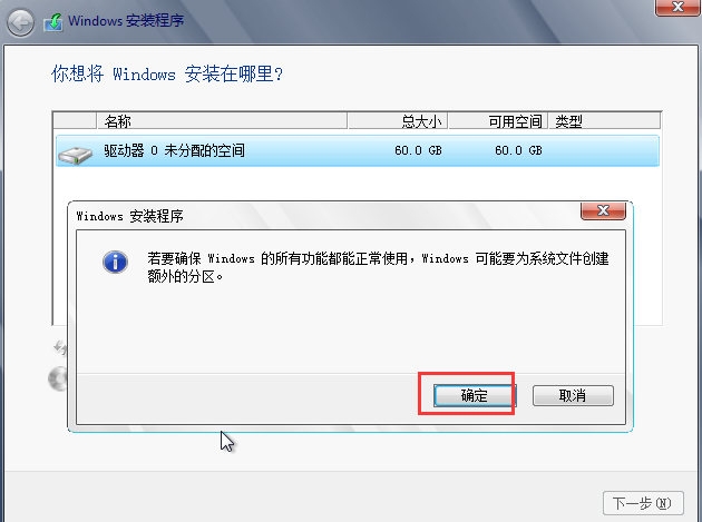 步骤八:自动生成,一个350M的保留分区。