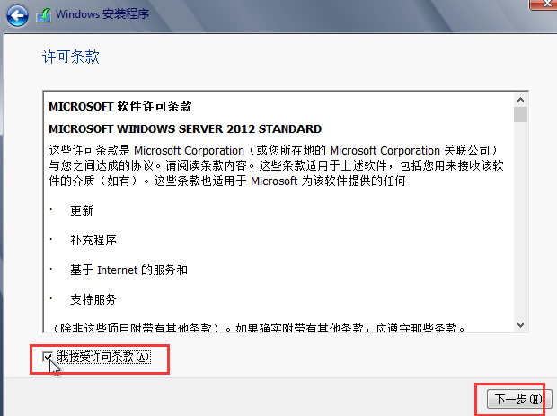 步骤四:选择接受,下一步