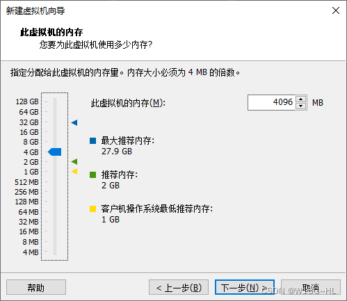 一般是四G,要是内存没那么多你可以改成1024,1024是最低的运行内存了,所以注意啊!