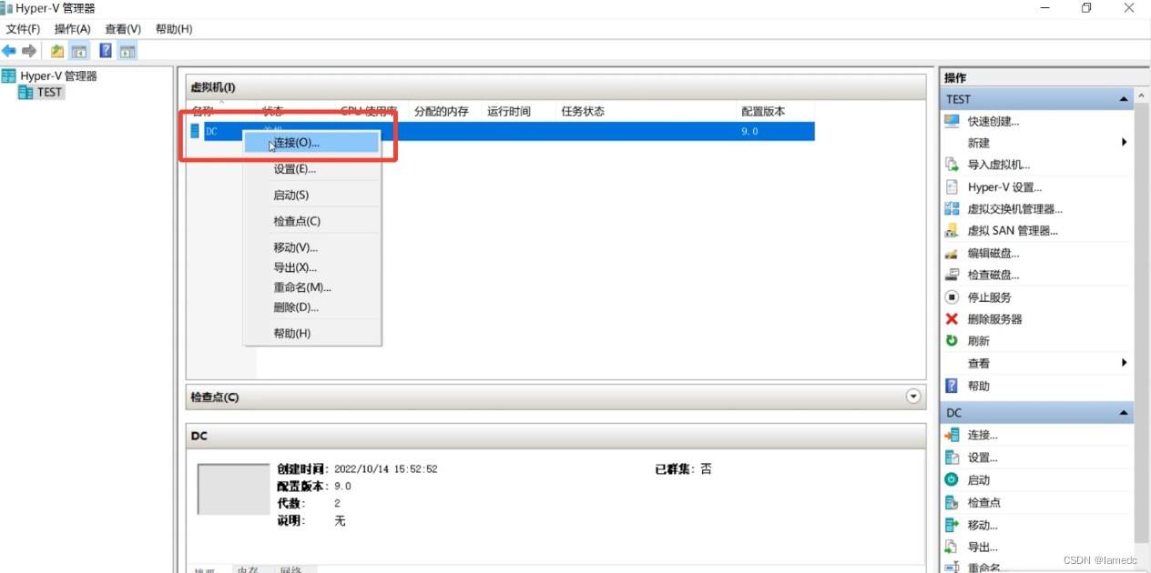 - 右击——“DC”——“连接”,双击也是可以打开的.