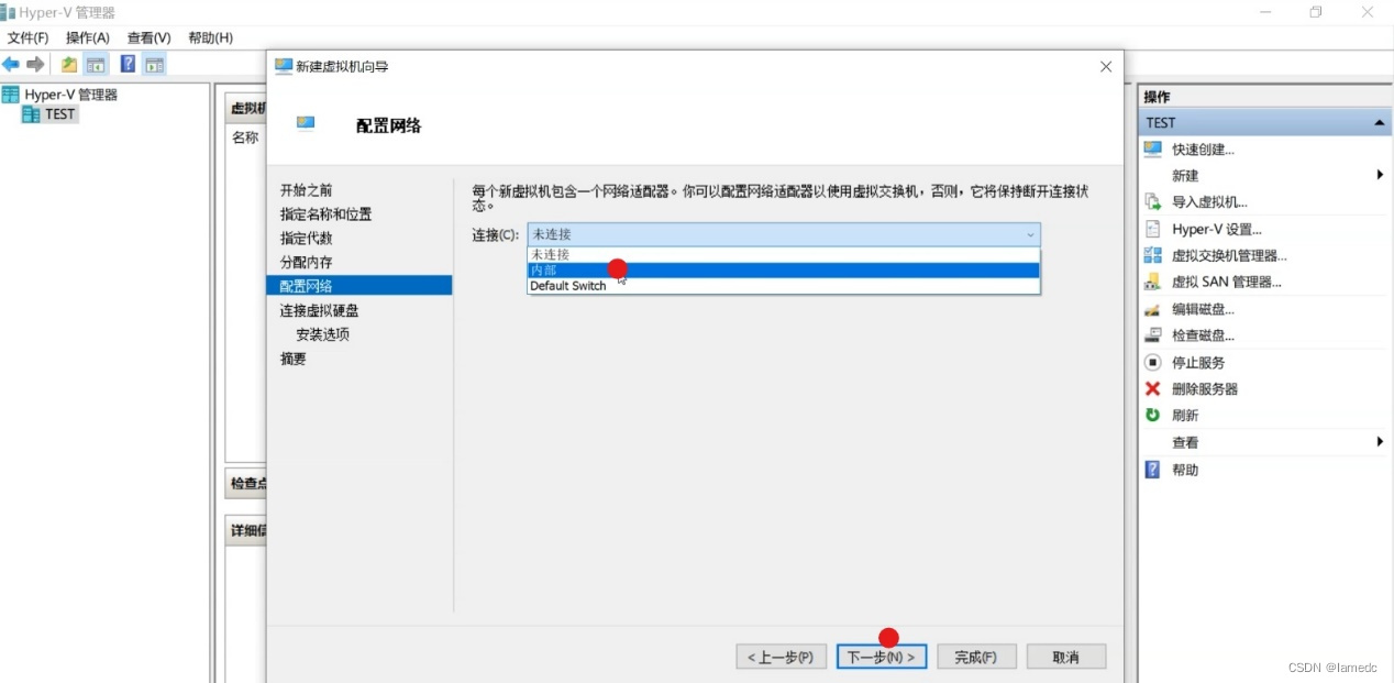 - 配置网络选择“内部”点击——“下一步”