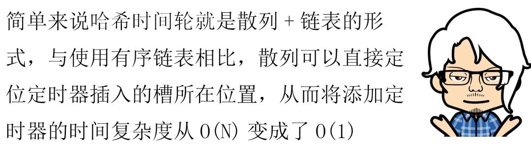 可以看出,哈希轮实际上是使用了哈希表的思想来将定时器散列到不同的双向链表中。在哈希轮中,如果要提高定时精度那么指针转动的频率si值要足够小;而如果要提高执行效率,则要求时间轮槽的数量足够大,因为这样每个链表上的任务数量就少了,每次需要处理的定时器就不多!