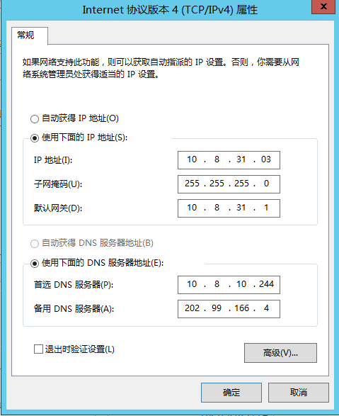 你是一家公司的网络管理员,负责管理和维护公司的网络。你的公司新购置了一台计算机,希望你安装Windows Server 2012 R2企业版操作系统,设置好TCP/IP参数。