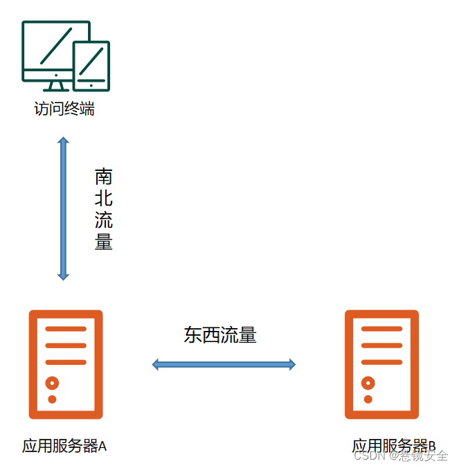 关于流量访问的模式,南北向流量通常指外部客户端对内部服务器的访问流量,东西向流量通常指内部环境下不同服务器间的访问流量。