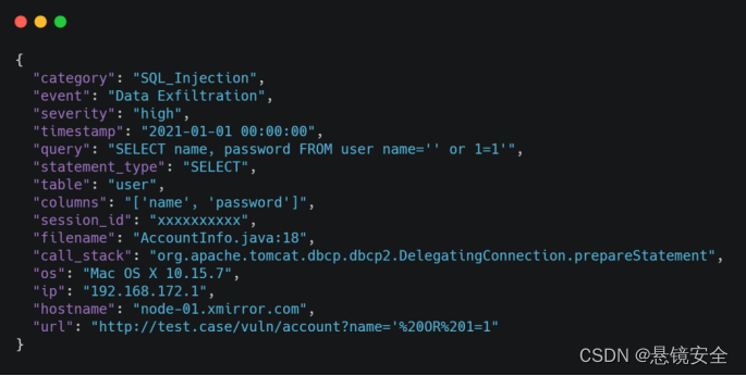 从外部入侵攻击的结果看,最终执行并达到攻击目的的位置,往往是程序对资源访问过程中存在缺陷的位置,如数据库访问、命令执行、网络请求、文件操作等。通过对程序内部函数堆栈及函数变量进行审查,可为安全人员补充应用层面的安全运营数据及可供审计的内容,包括具体访问的webshell后门、恶意命令、SQL注入语句、敏感数据内容及存储方式等。