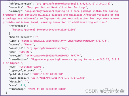 - 组件专用风险库:经过我们对于漏洞数据相关的调研,诸如Github和Snyk这些机构会有专门的组件风险库对外提供,通过获取并分析这些信息,经过加工后可以得到可用性极高的组件风险库,可按需研判。