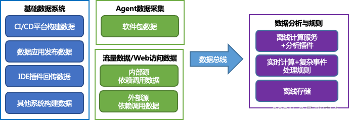 - 软件资产的透视:企业内部需要对所有的应用系统引用了哪些组件这件事情有着非常清晰的认知,在考虑尽量多的情况下覆盖绝大多数的场景(业务应用系统、Hadoop作业等数据服务、Puppet等运维服务等),并且研究他们的开发流程,分析哪些阶段可以引入SCA能力做风险发现。