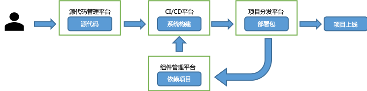 开源组件的生产-构建-发布过程其实是与企业内部常规的系统研发上线的流程是一致的,简单来说可以抽象成下图中的样子: