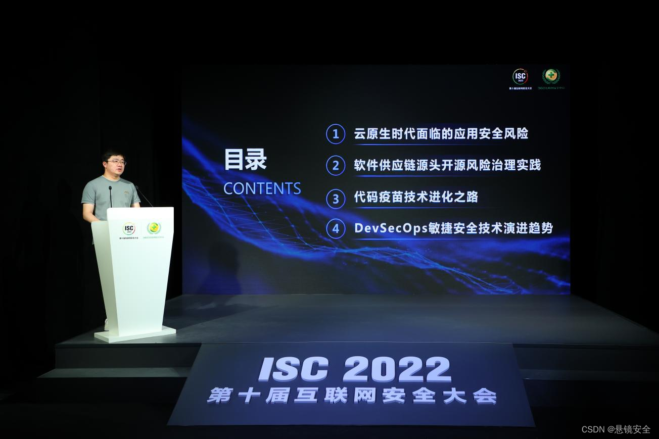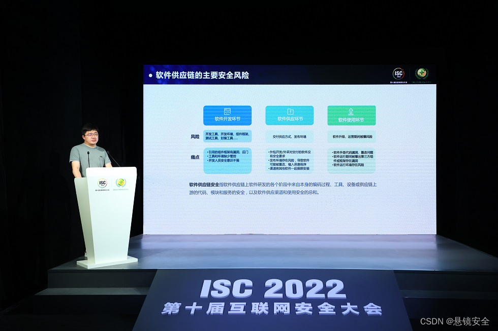 2022年8月2日,在第十届互联网安全大会(ISC 2022)软件供应链安全治理与运营论坛上,作为论坛出品人,悬镜安全创始人&CEO、OpenSCA开源社区创始人子芽以“云原生场景下软件供应链风险治理技术浅谈”为主题,分享其对软件供应链安全领域的深刻洞察。