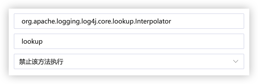 例如CVE-2021-44228 Log4j2远程代码执行漏洞,其主要原因是lookup错误处理了${jndi://}数据,导致了远程代码执行的风险。这种情况下,可以直接根据RASP获得的代码调用栈信息,直接拦截此方法。